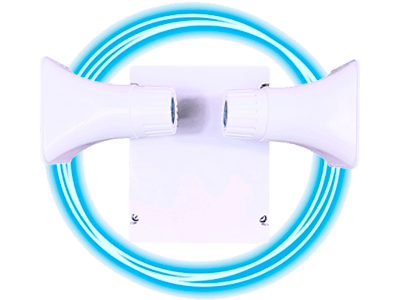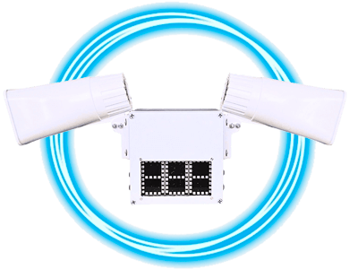 Activa con controles de larga distancia, hasta 500 metros de alcance, frecuencia 433Mhz.